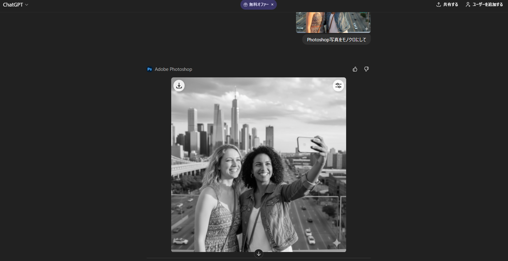 - ChatGPT上でPhotoshopの編集機能が無料で利用可能になりました。