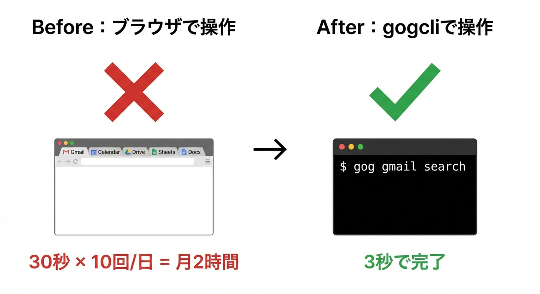 - gogcliはGmail・カレンダー・ドライブなどGoogle Workspaceをコマンド1行で操作できる