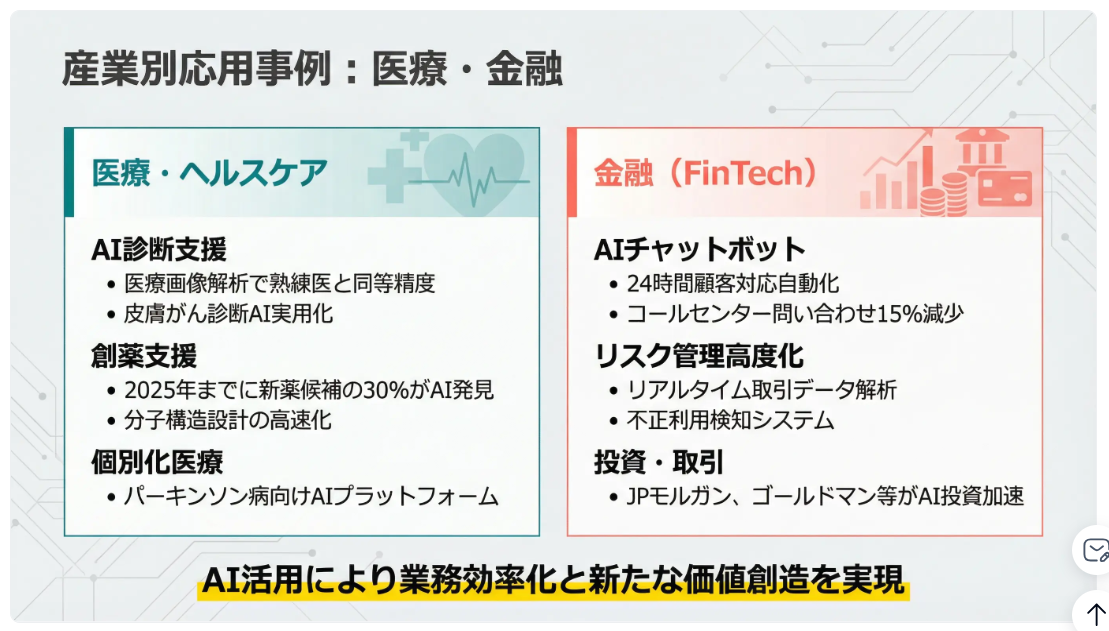 「生成AIの最新トレンドについて、ビジネス活用の観点からまとめたプレゼン資料を作成してください。特に製造業での事例を含め、スライド枚数は10枚程度でお願いします。」